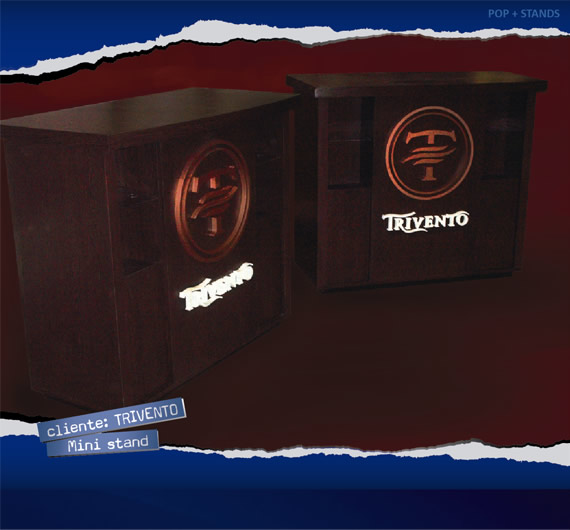 Mini stand para promoción de vinos. Instalado en supermercados. Construcción en madera placa. Logo corpóreo en corte láser de mdf.